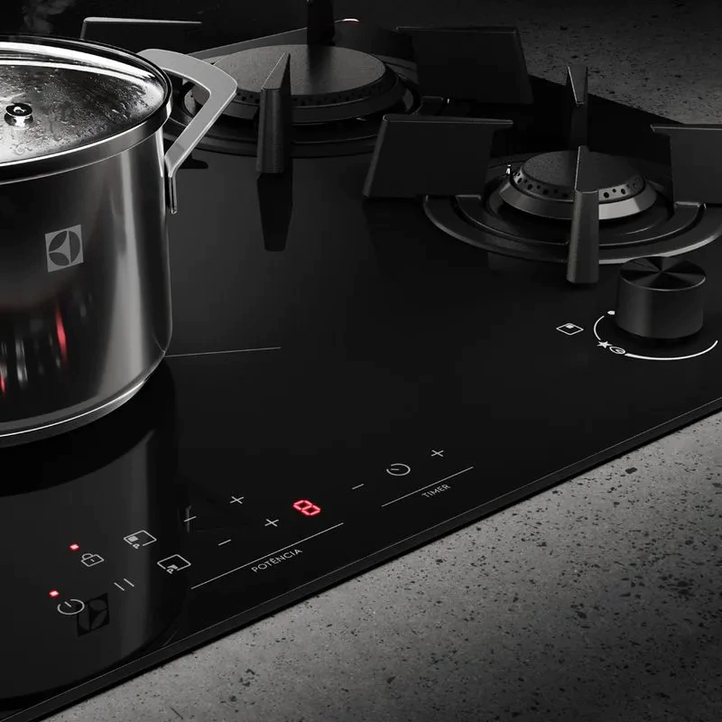 Se você curte flexibilidade e eficiência, o Cooktop Híbrido Electrolux IE62H vai te surpreender! Ele é perfeito para quem quer um modelo prático, rápido, seguro e com muito estilo. A combinação entre induções rápidas e práticas com a versatilidade do gás potente traz a solução ideal para qualquer tipo de preparo.