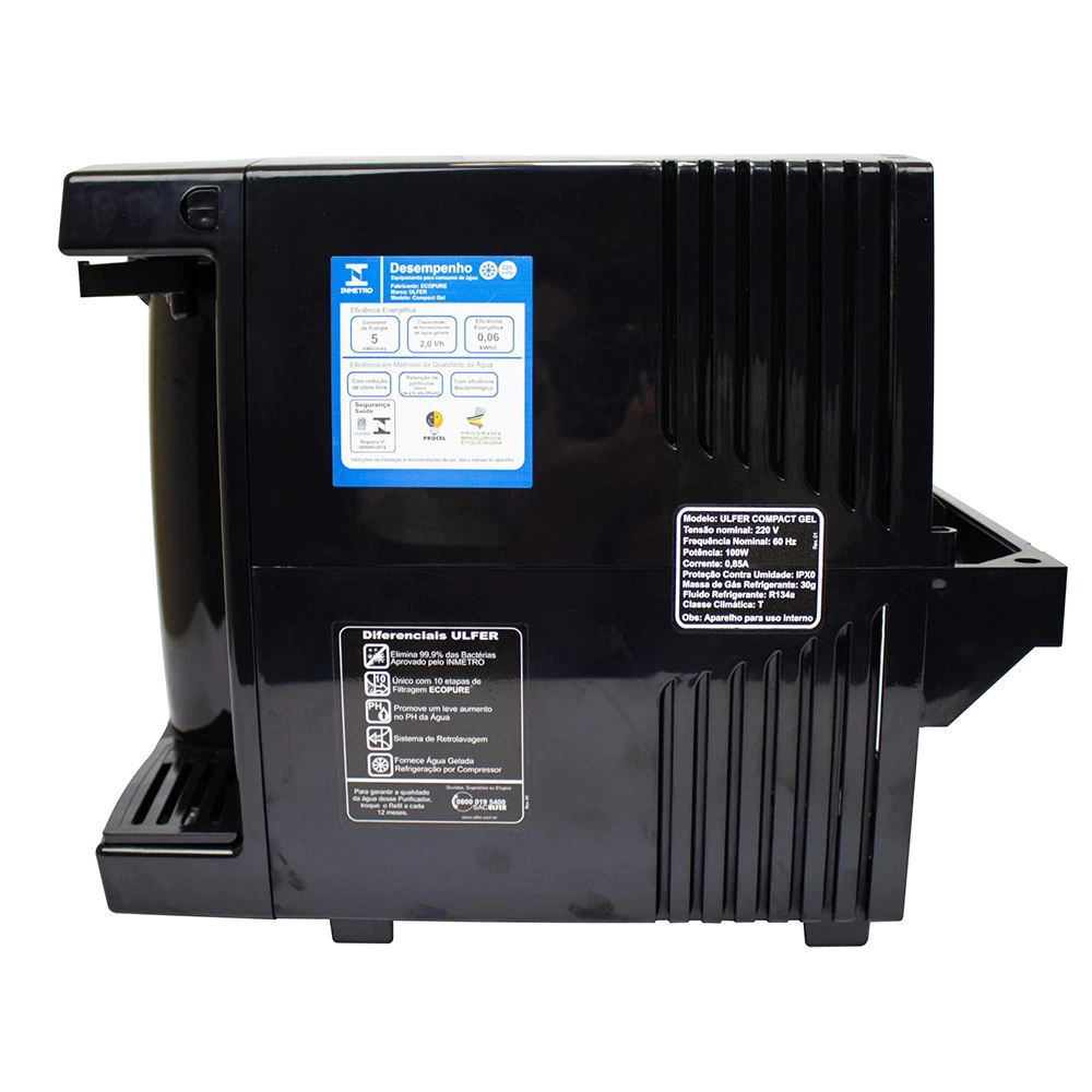 O Purificador de Água Ulfer Compact  Preto oferece inovação e praticidade com seu sistema Ecopure®, fornecendo água em três temperaturas: natural, fresca e gelada. Com um design compacto e eficiente, ele é ideal para qualquer ambiente, garantindo água pura e saudável sempre à disposição, seja em casa, no trabalho ou em espaços comerciais